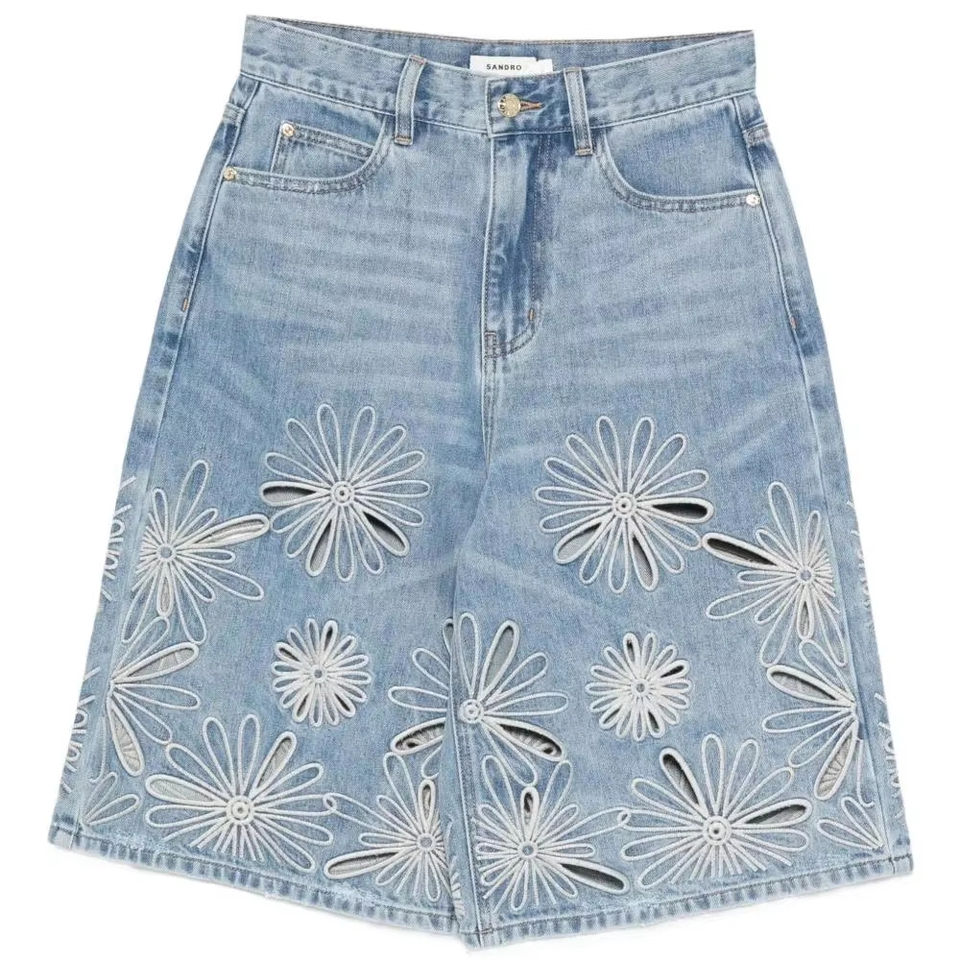 Jean court Leduo personnalisé pour femme, taille haute, bleu clair, motif floral ajouré, haute qualité, tendance estivale