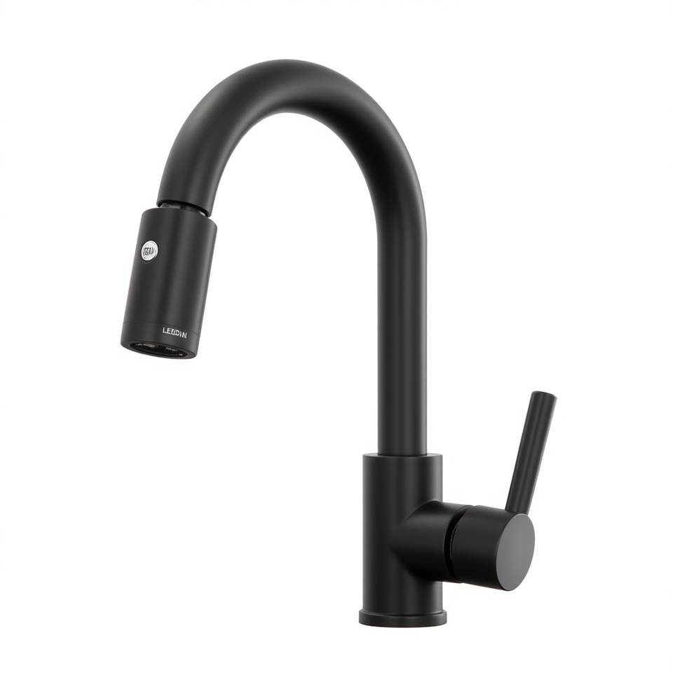 Leedin Kitchen Faucet Single Handle Pull Down Sprayer Modern Minimalist Design Blackened Brass Deck Mounted
