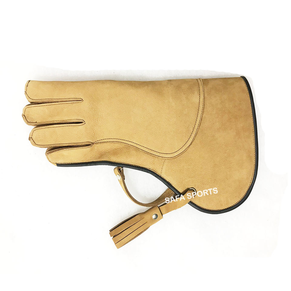 Gants en cuir nubuck à gauche avec manchette longue et large Ensemble de fauconnerie en peau de vache pour la chasse aux oiseaux Eagle Hawk et aux animaux de compagnie