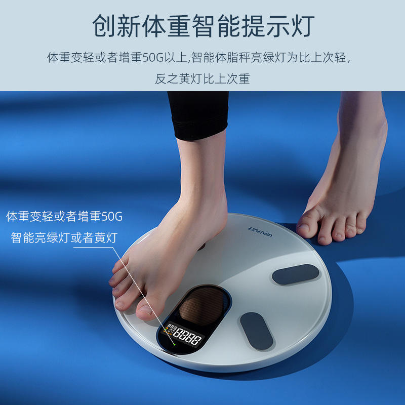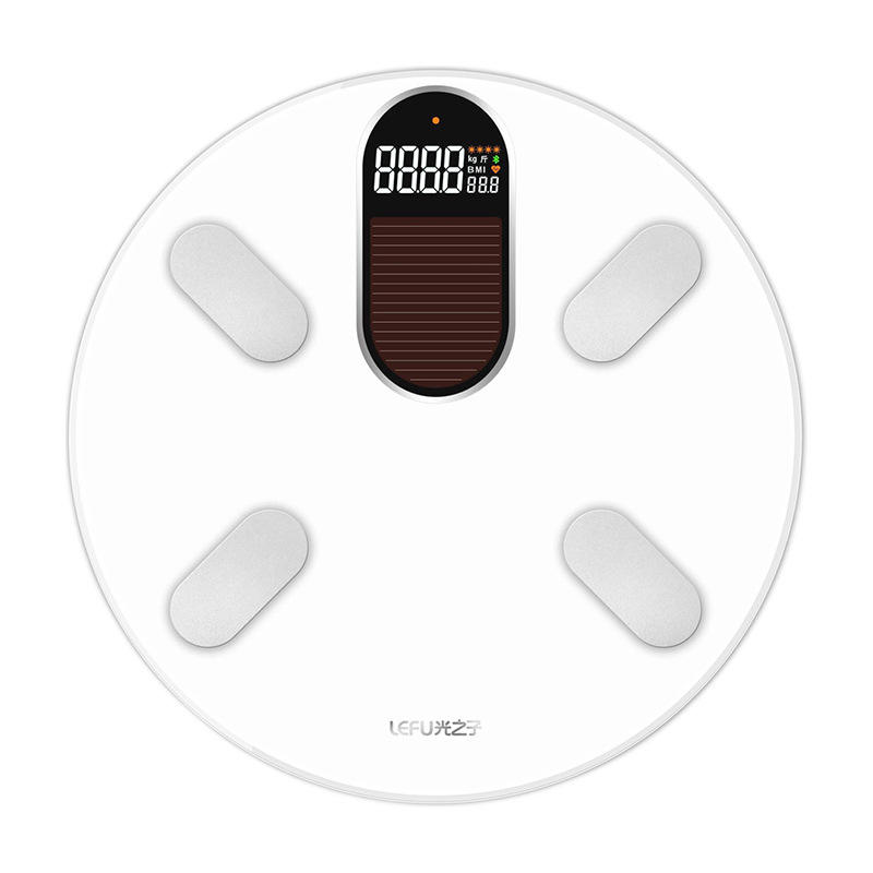 Balance électronique Bluetooth Lefu pour la graisse corporelle, ronde, blanche, à batterie solaire, pour usage domestique et commercial