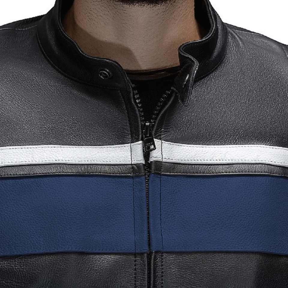 Legacy Racing veste de moto pour hommes en cuir de vachette véritable coupe-vent certifié CE protecteur personnalisé bleu noir amovible