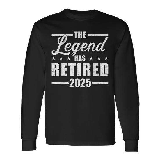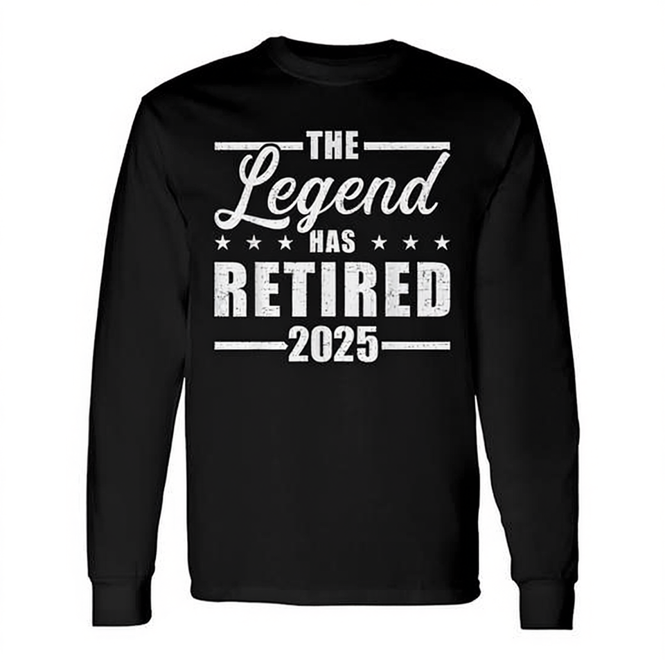 T-shirt promotionnel à manches longues pour collègue de travail, cadeau de retraite Legend 2025, avec motif de chapeau emblématique