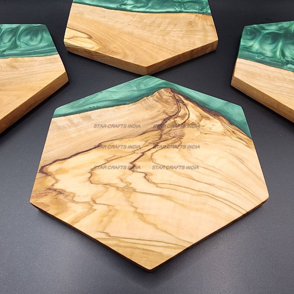 Sous-verre Legend avec logo personnalisé Tapis de table pour la maison Set de sous-verres en bois et résine pour le café et les boissons de table