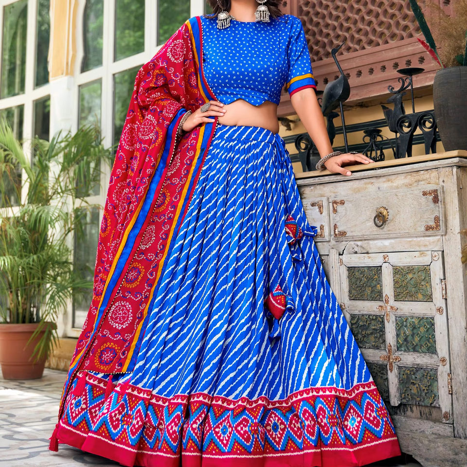 Printing Methods:Leheriya With Patola Print Border