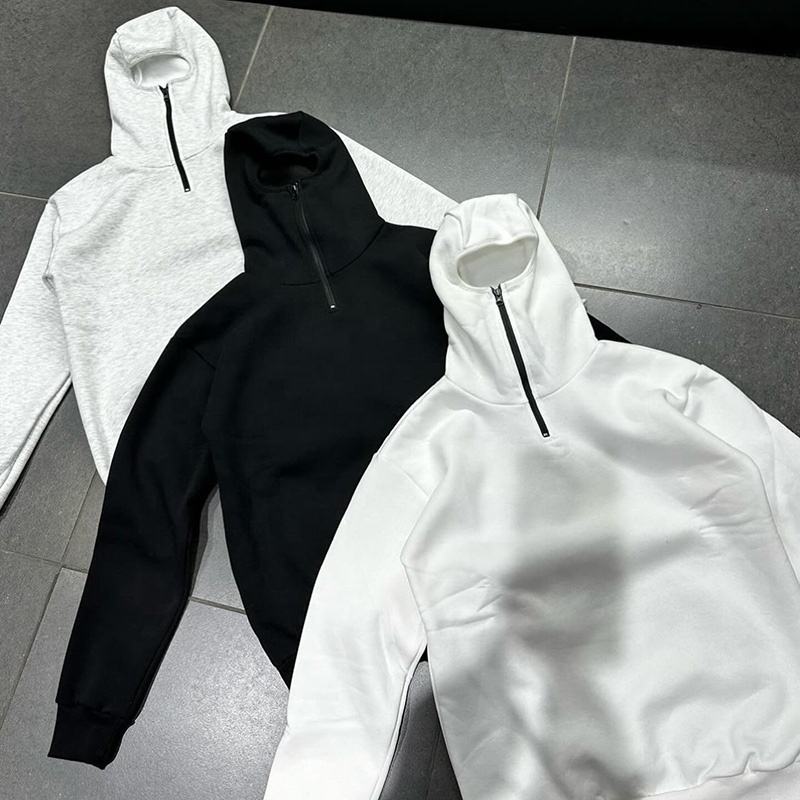 Leika hommes fermeture éclair personnalisé français éponge plaine hommes intégré respirant V2 Ninja demi fermeture éclair cagoule sweats à capuche