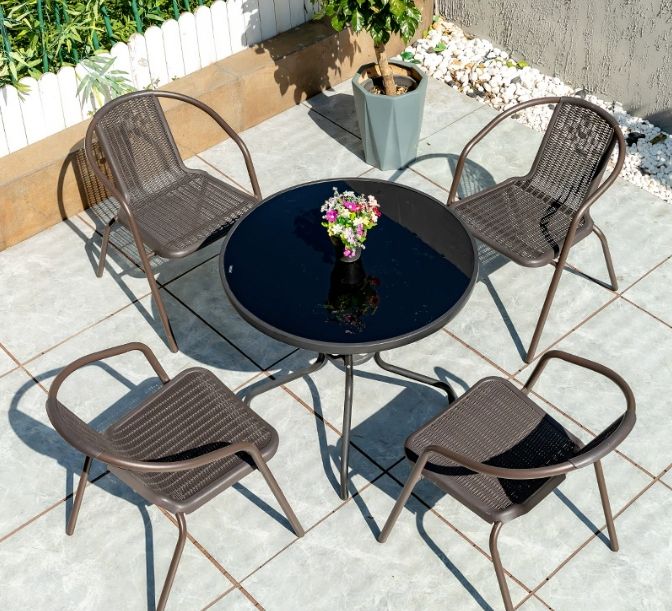 Table basse de loisirs Table de patio Chaise Mobilier de patio moderne Ensemble table et chaises de jardin Balcon Chaise de loisirs en rotin