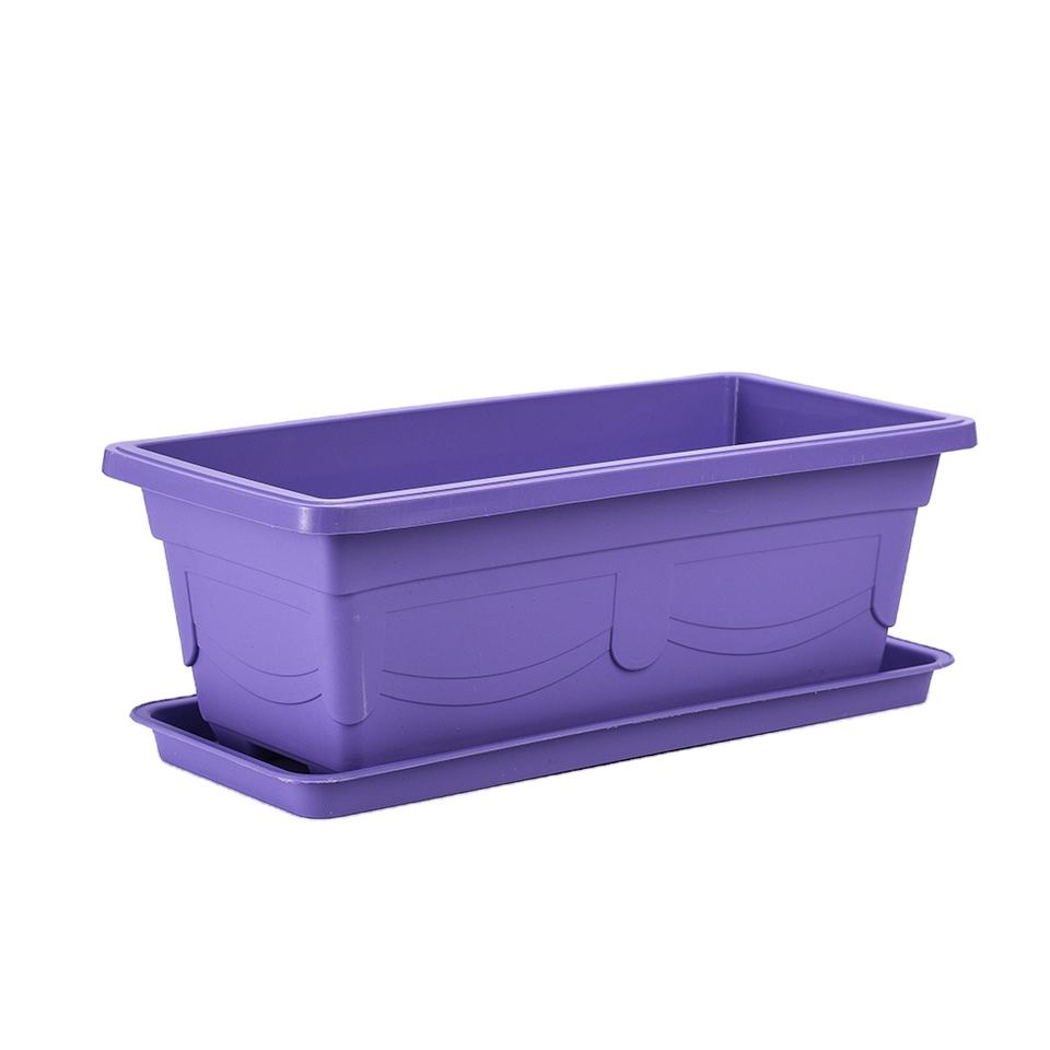 Pot de fleurs rectangulaire en plastique, motif de gravure, pour loisirs, bon marché, avec plateau, 50 cm