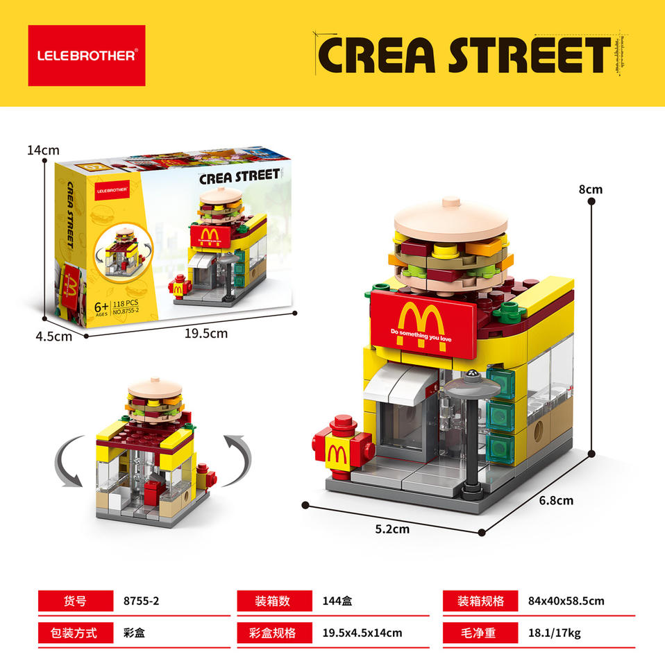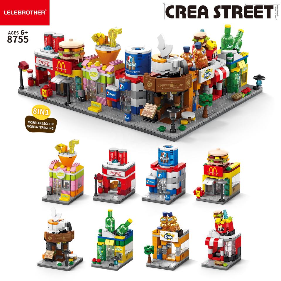 Lele Brother Mini Street View City Commercial Street Building Blocks 8-en-1 Jouets de construction éducatifs 5-7 ans