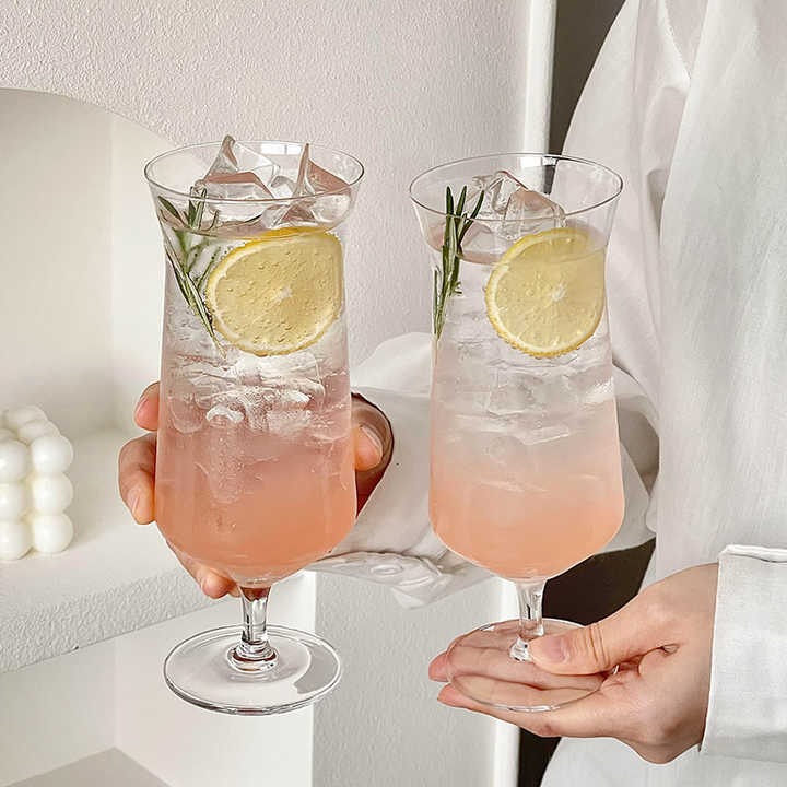 Lelyi Creative Ins Simple High Footed Glass Cup for Home Use Exquisite Modern Design Glass Cup for Back to School Gift