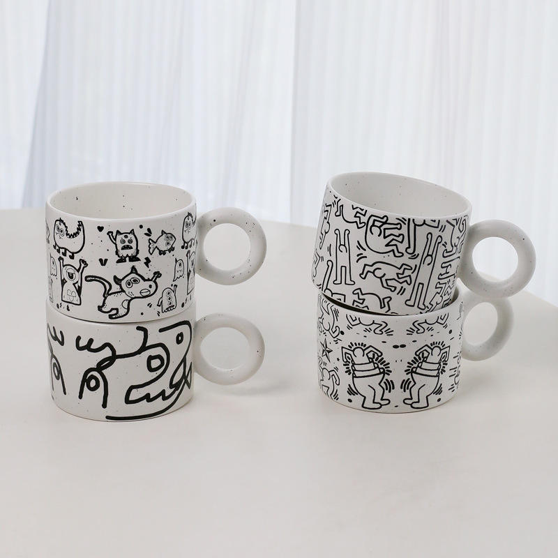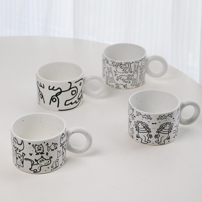 Lelyi INS Tasse en céramique d'art abstrait moderne Tasse à café de niche créative de grande valeur