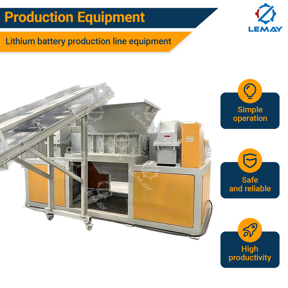 Machine de recyclage de batteries au lithium pour déchets électroniques Lemay modèle 1500, moteur 224,7 kW, équipement de traitement des déchets électroniques personnalisé