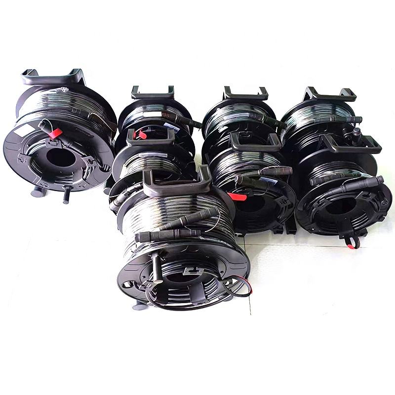 Câble hybride tactique blindé en acier DuraTAC compatible Lemo SMPTE 311M avec bobine pour convertisseur EFP vers fibre 4K