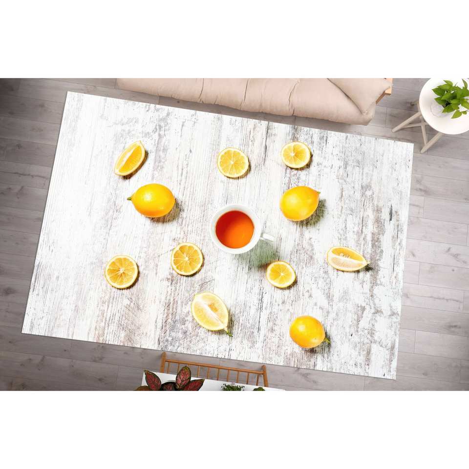 Tapis en chenille à motif citron : Tapis de porte moderne pour cuisine, avec poils doux
