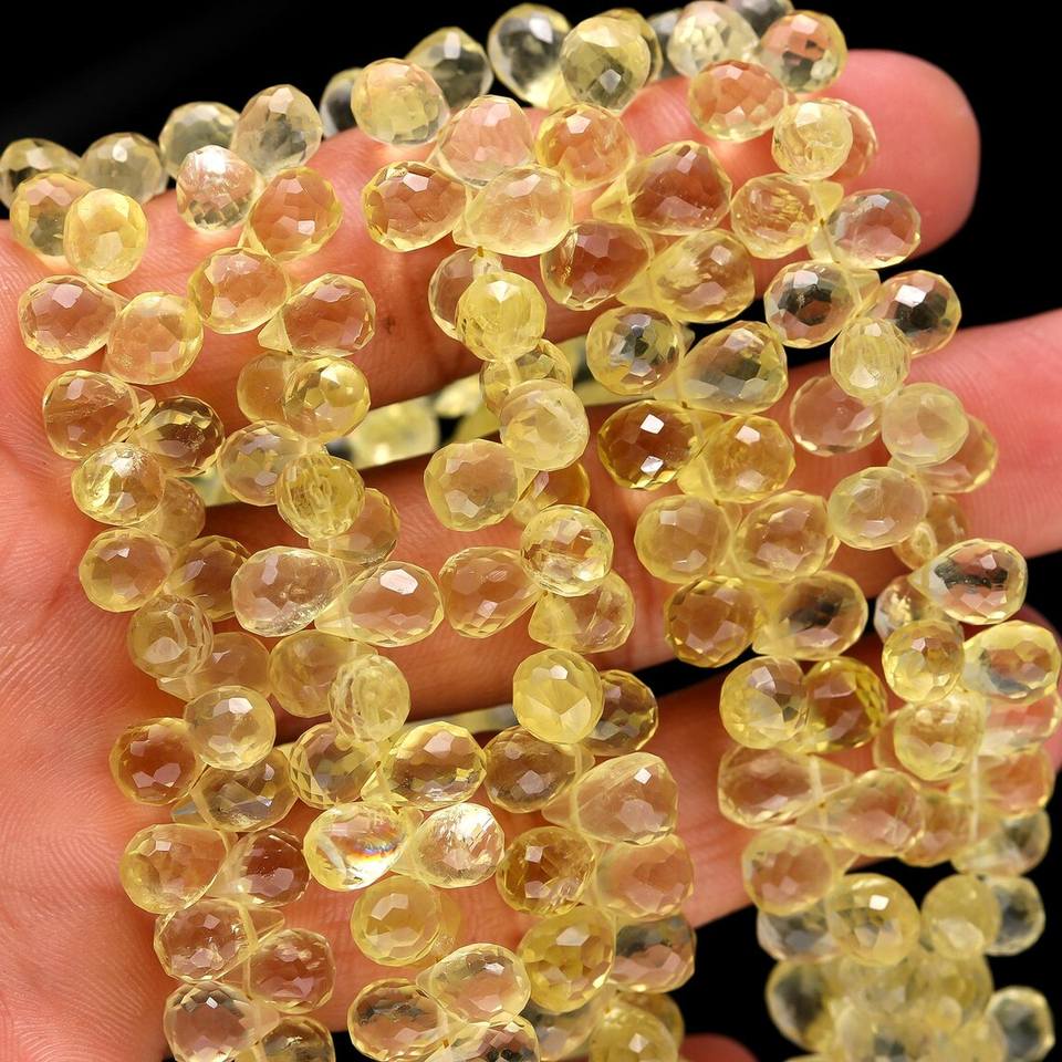 Lemon Quartz Faceted Teardrop Briolette Beads