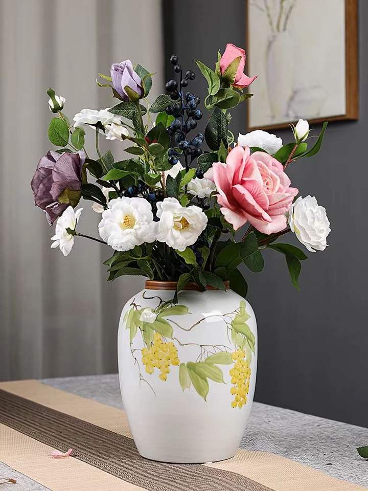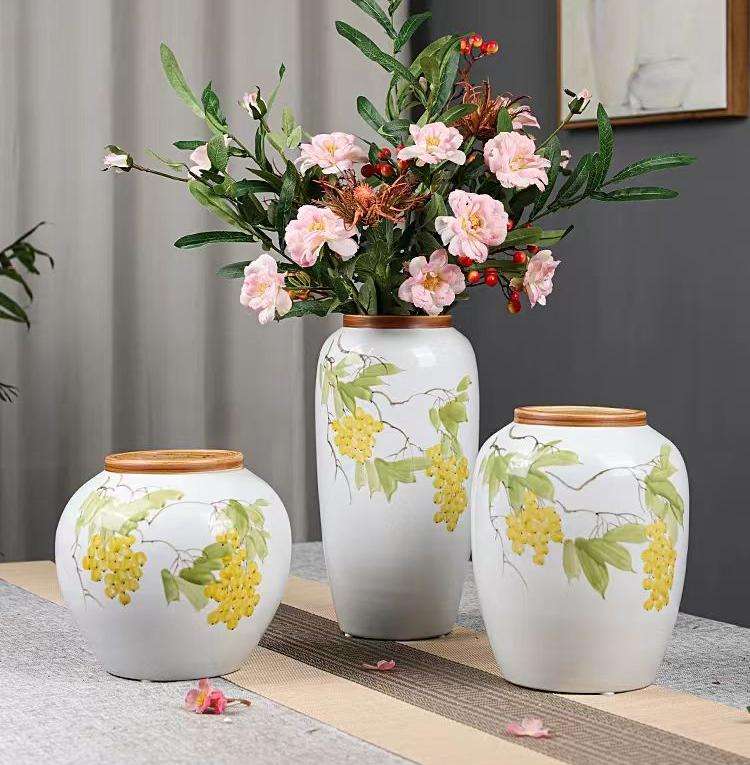 Vase de cimetière blanc et jaune motif citron vase de fleurs végétales artificielles 3 pièces un ensemble