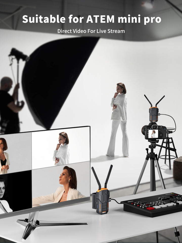 Lemorele R100 Plus 1080P Kit Émetteur-Récepteur HDMI Sans Fil 200m pour Caméra, Téléphone, Ordinateur avec Batteries