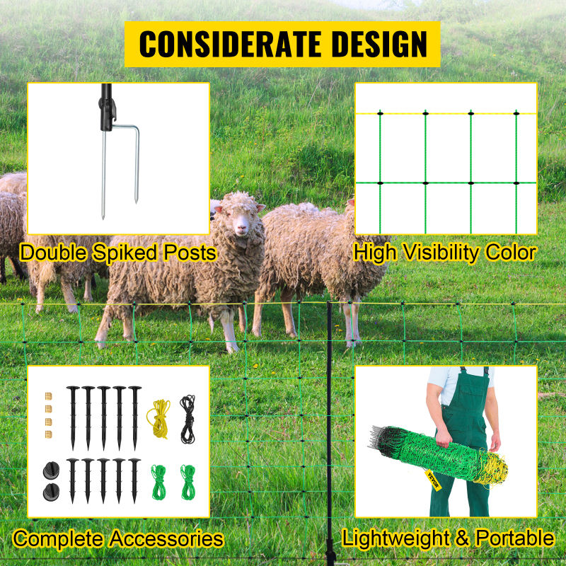 Filet électrique pour volailles et moutons, longueur 50 m, hauteur 1,2 m, pratique, durable, vert