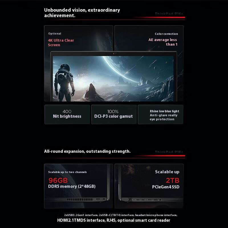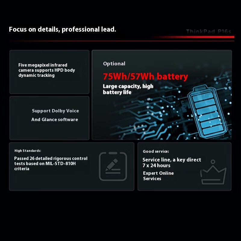 Ordinateur portable de jeu Lenovo ThinkPad P16S avec écran OLED de 16 pouces, processeur Ultra7, 32 Go de RAM, SSD de 1 To, RTX500Ada 4 Go, nouveau clavier anglais