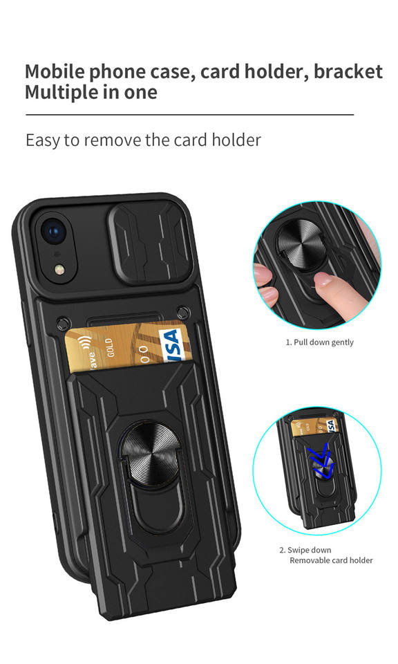 Étui de téléphone antichoc pour iPhone XR avec fenêtre coulissante de protection d'objectif