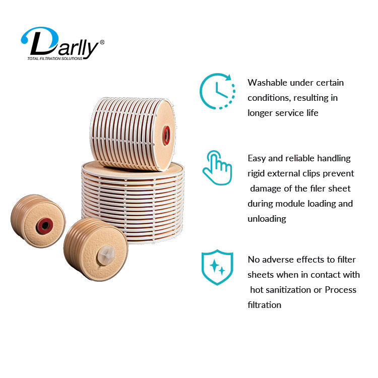 Feuille filtrante en profondeur:Filtres en cellulose, résines, perlite, etc.