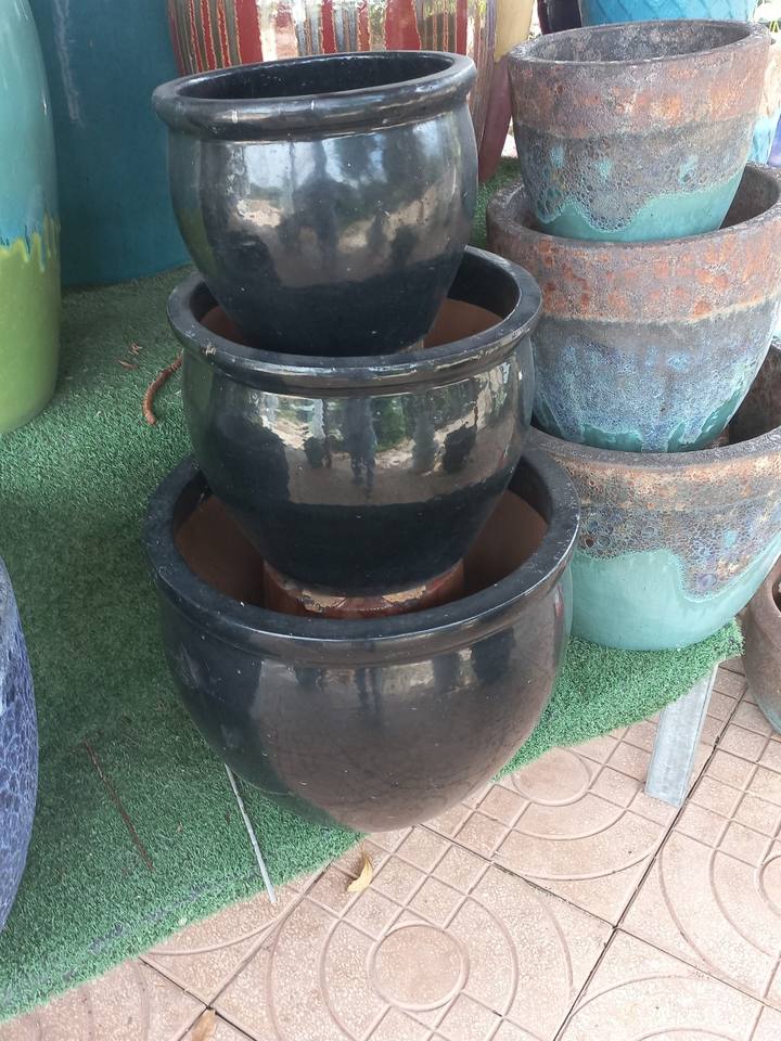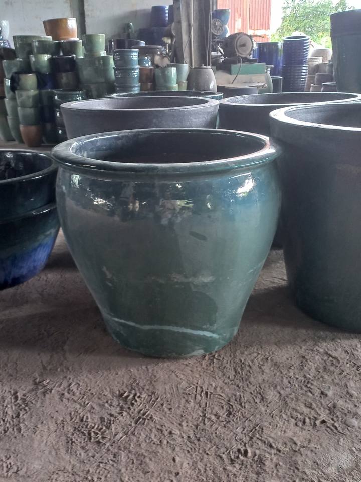 [Leo Nguyen Le] - Vente en gros de grands pots en céramique, pots à fleurs bleus vernissés, lot de 2 pots géants pour plantes d'extérieur, jardin à domicile