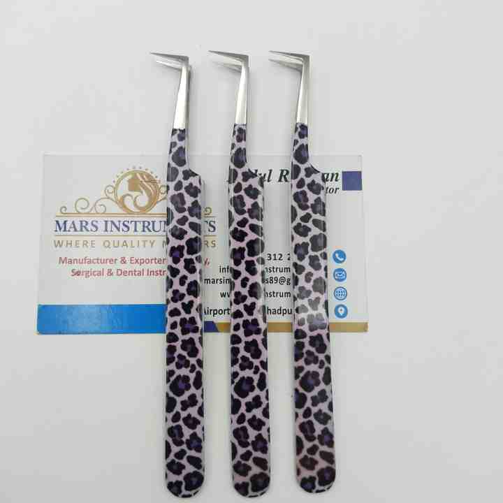 Pince à épiler d'extension de cils en papier enduit de conception léopard en acier inoxydable professionnel 90 degrés fin