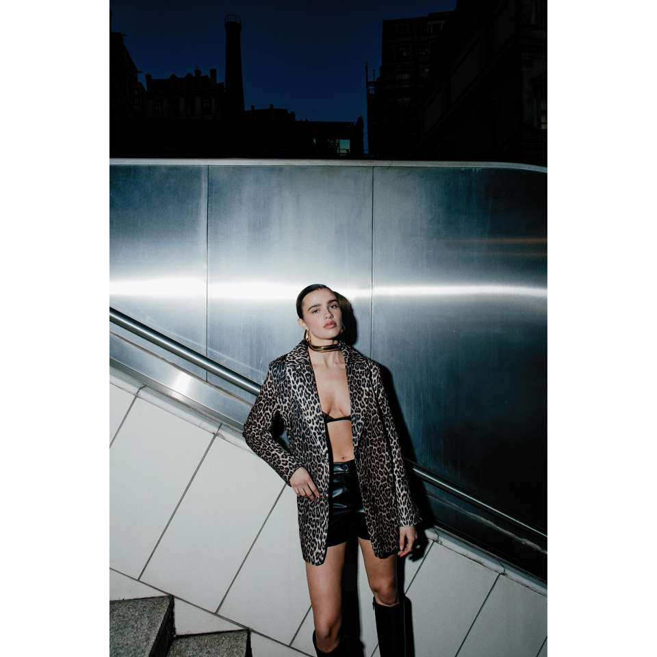 Blazer en polyester à imprimé léopard pour tous les jours