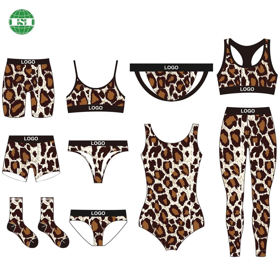 Imprimé léopard image personnalisée maquette soutien-gorge de sport pour femme garçon short legging sous-vêtements string hommes caleçons chaussettes
