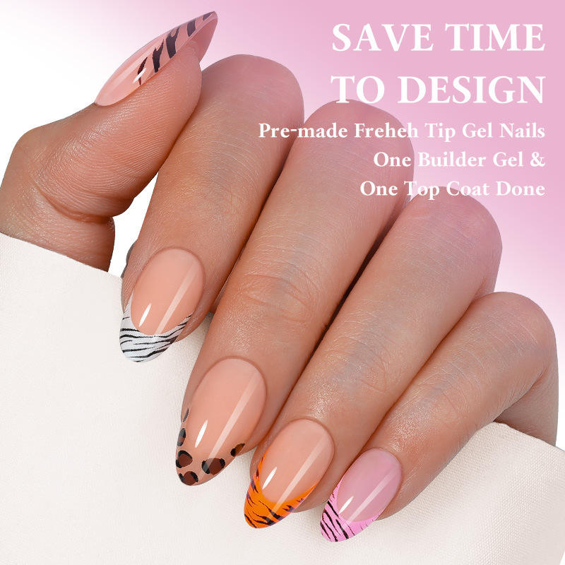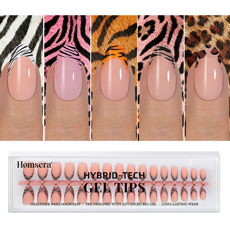 Faux ongles à presser motif léopard, courts, forme amande, effet mat, avec design