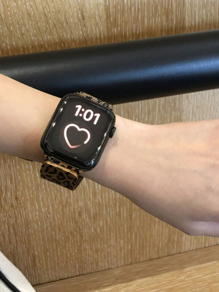 Bracelet magnétique pour montre connectée femme Upro Leopard Print, compatible avec Apple Watch Series 11/10/9/8/SE/3/7/6/5/4/3/2/1/Ultra/3/2/1