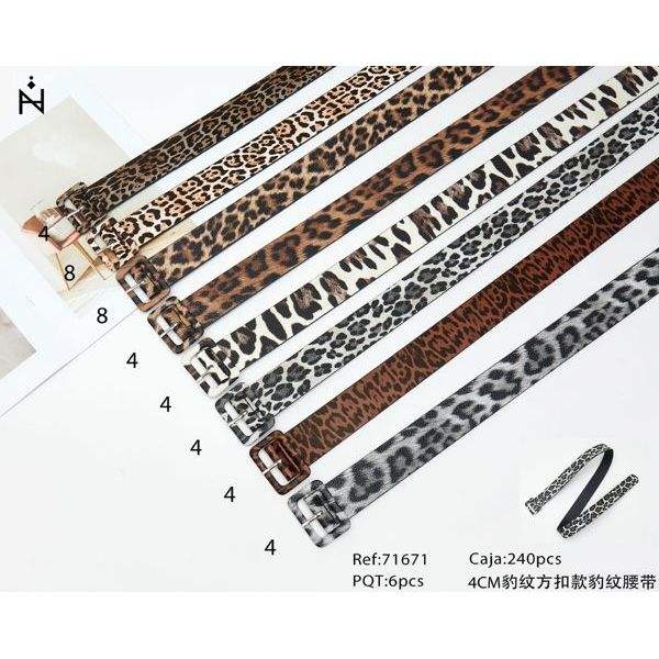 Ceinture à boucle carrée imprimé léopard 4 cm en tissu pour femme, ceinture de mode