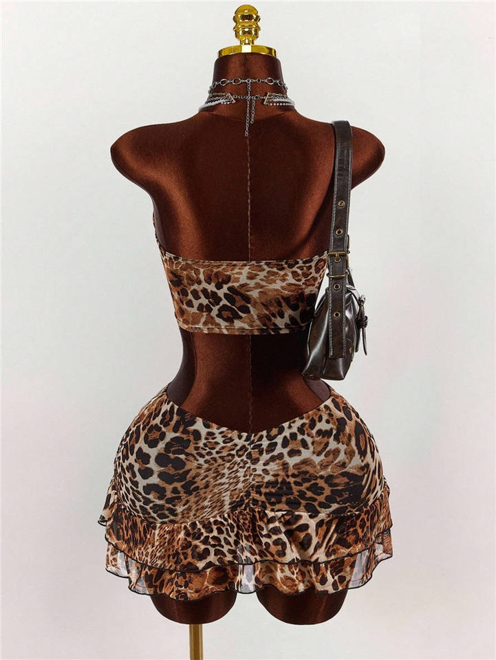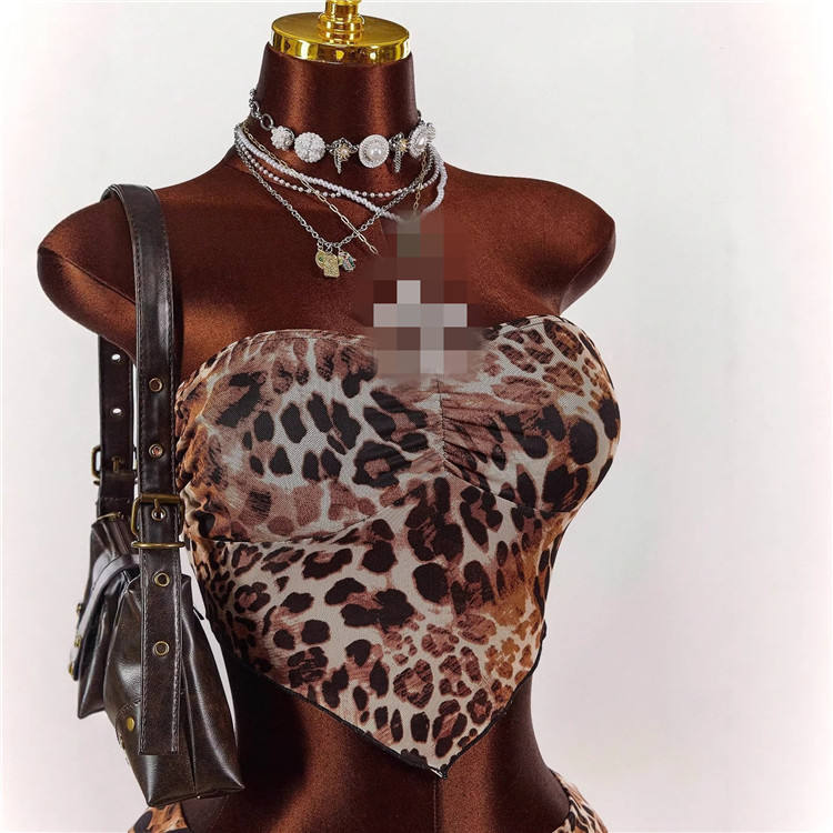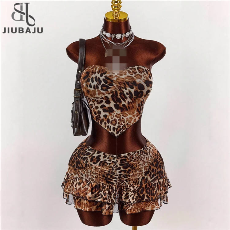 Ensemble 2 pièces léopard transparent pour femme – Hauts bustier et jupe assortis sexy pour l'été – Tenues moulantes extensibles pour la nuit