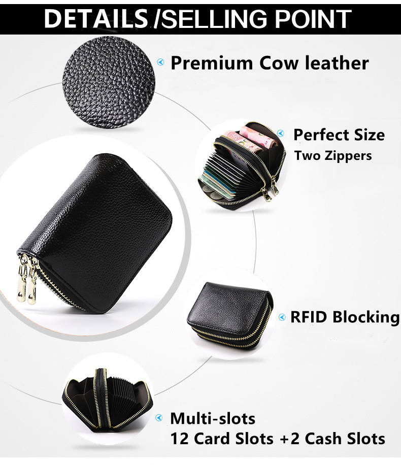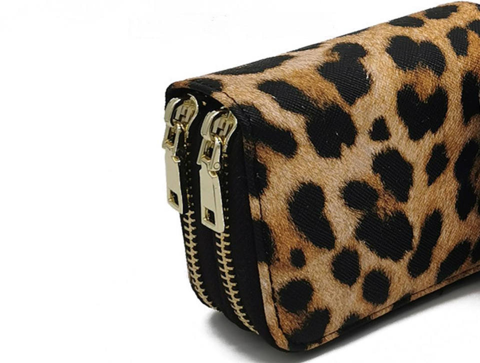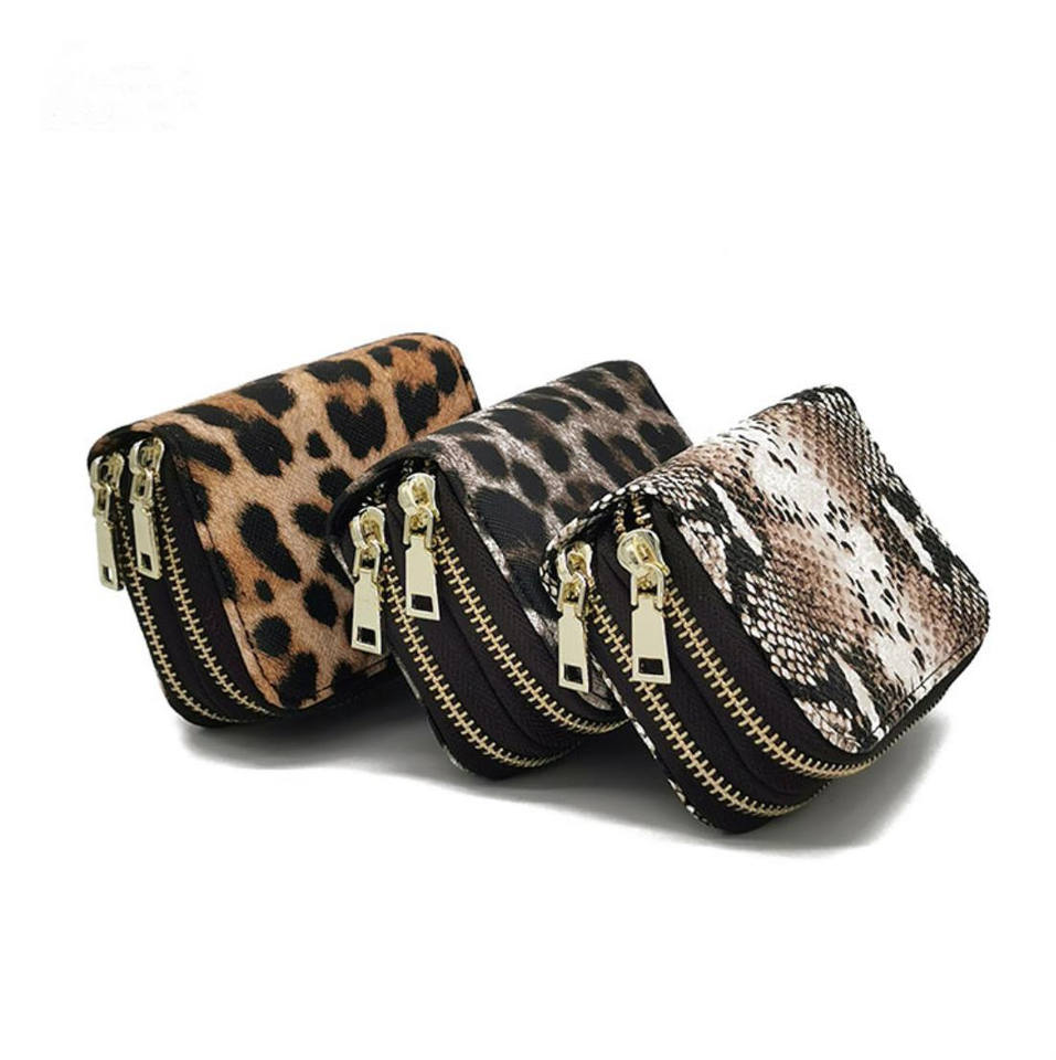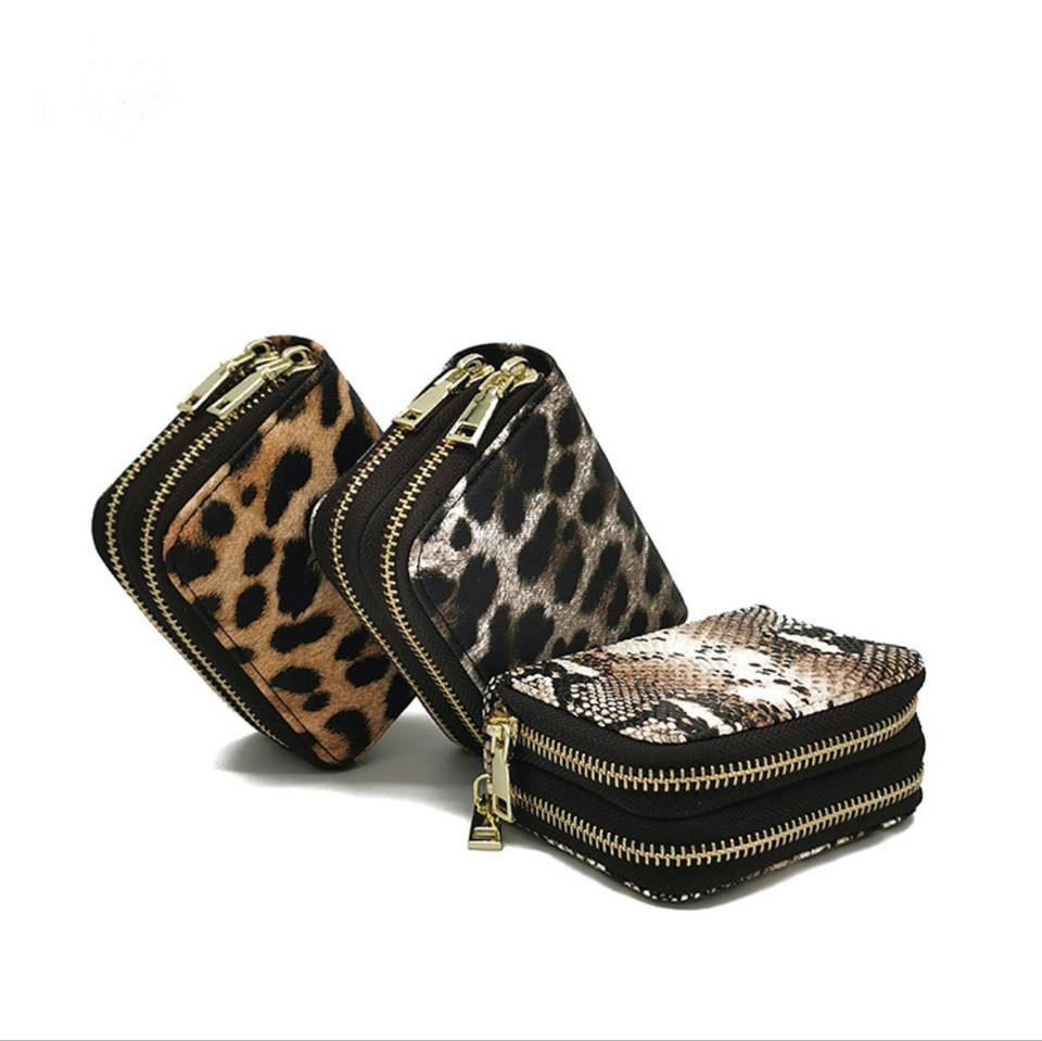 Portefeuille pour femmes en cuir PVC/PU à motif léopard/serpent/crocodile avec fermeture à glissière, blocage RFID, style tendance, logo personnalisé