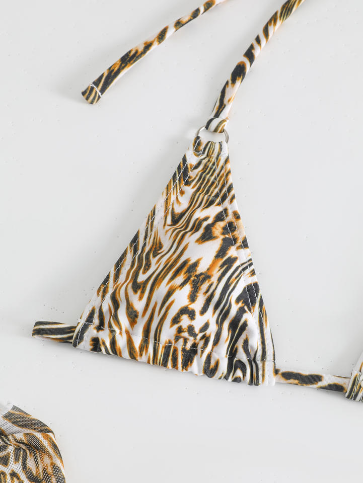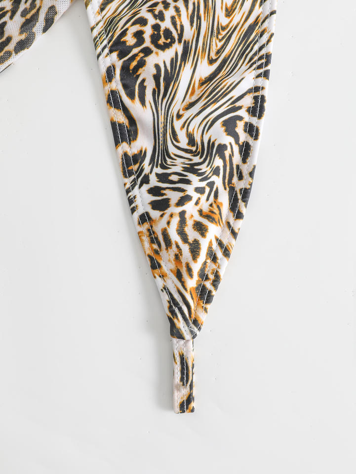 Léopard avec maille sarong licou Mini Micro string Bikini femme maillot de bain femmes maillots de bain trois pièces Bikini ensemble maillot de bain nager