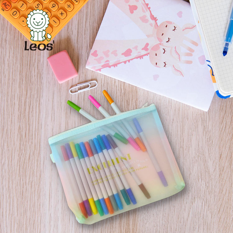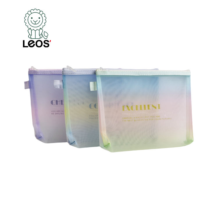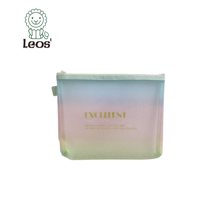 Leos' Portable A5 Size Stylish Gradient Transparent Nylon Mesh Zipper Pouch Washable Cosmetics Pencil Case Custom Logo Bag