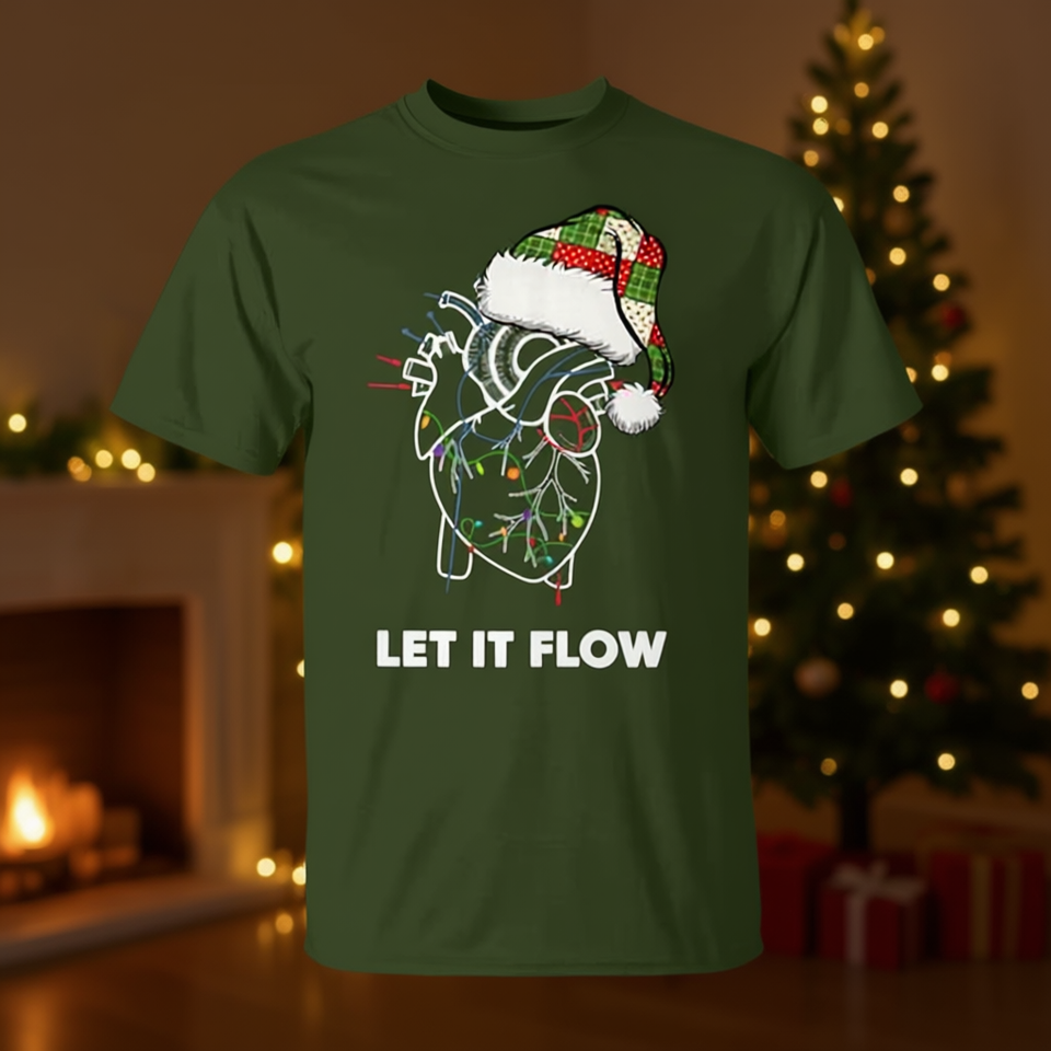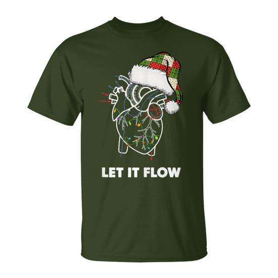 T-shirt Let It Flow Anatomy Heart Cardiac Nurse Patchwork Santa Hat