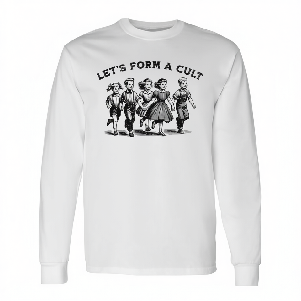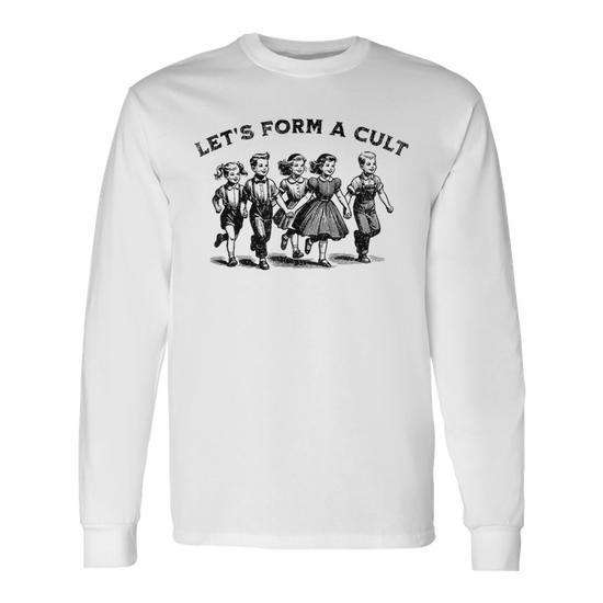 Let's Form A Cult T-shirt à manches longues, style rétro, humoristique et satirique