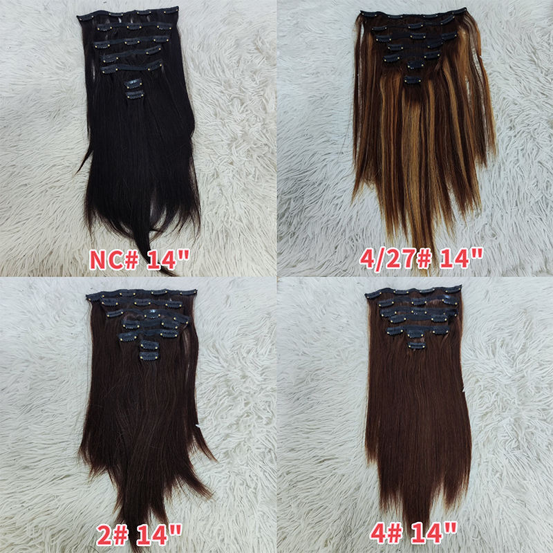 Extensions de cheveux à clipser Letsfly, couleur 4 # Extensions de cheveux humains vierges brésiliens lisses, 10-16 pouces, 100% cheveux humains, tissage