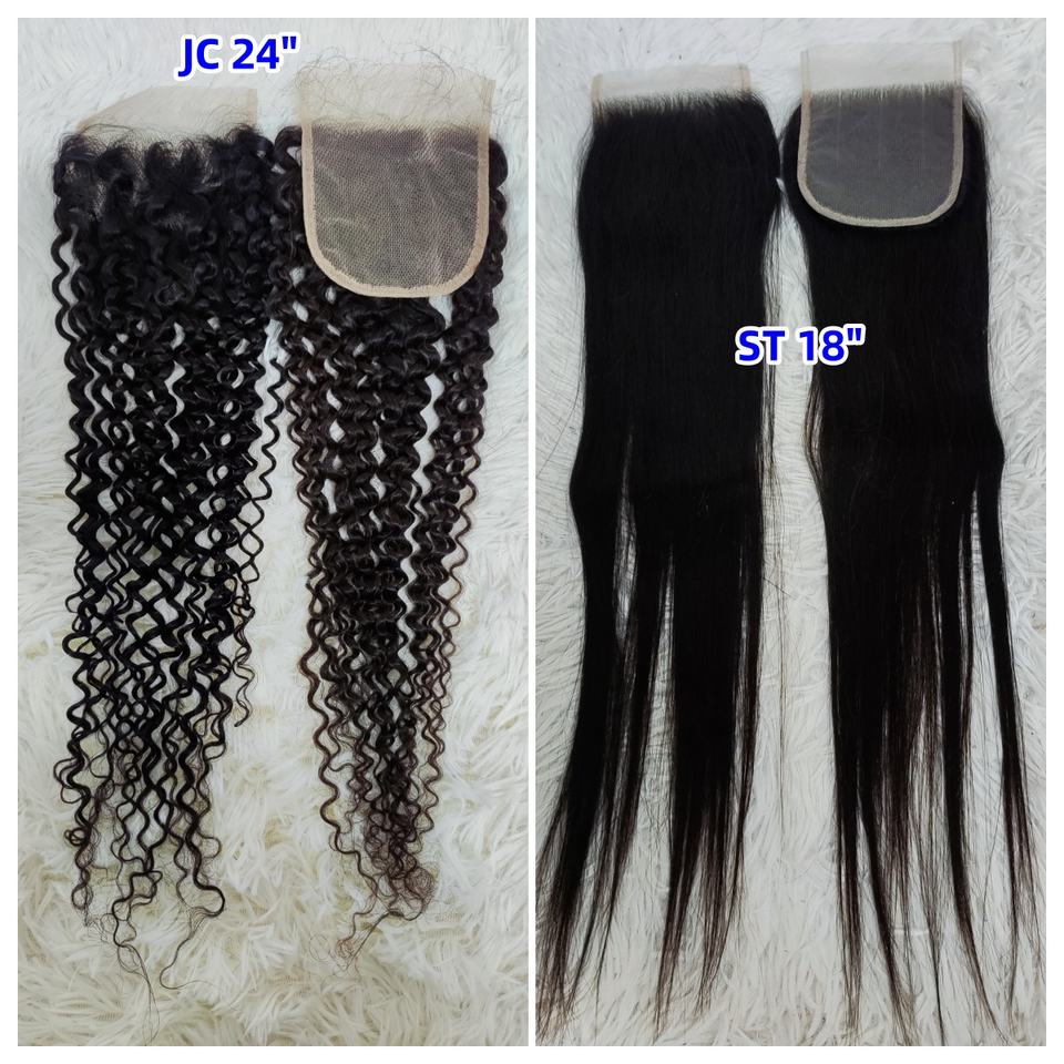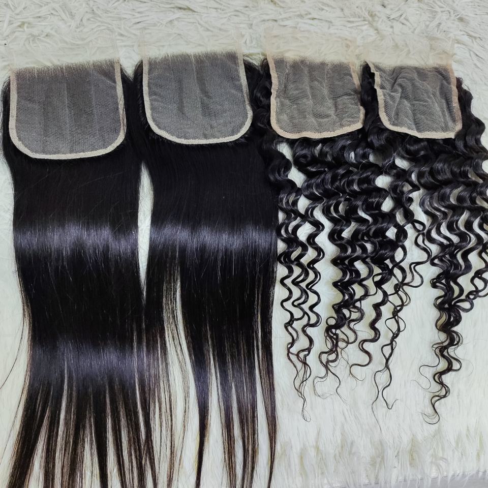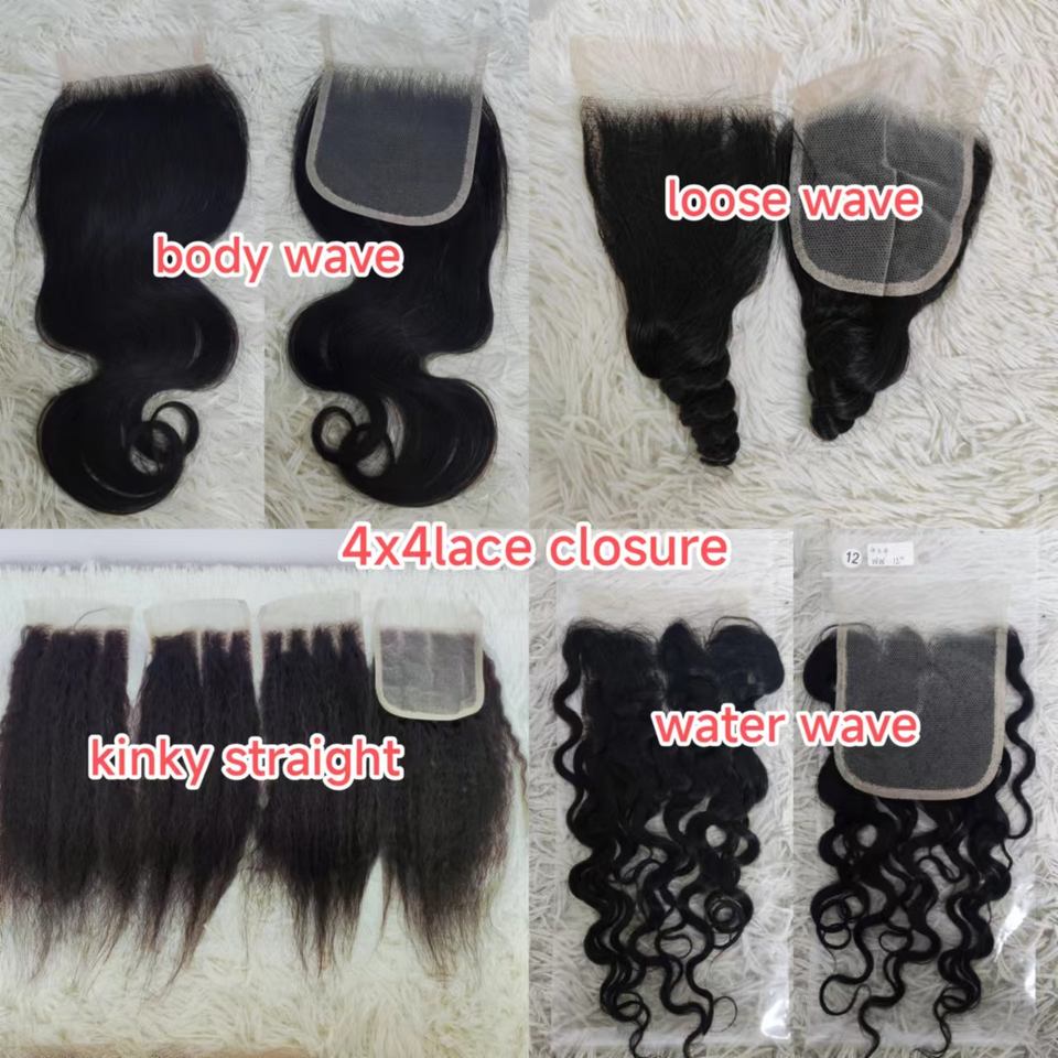 Letsfly Fermeture en dentelle transparente sans couture 4x4, dentelle suisse pré-épilée, boucles pixie, 100% cheveux humains Remy, extensions de cheveux
