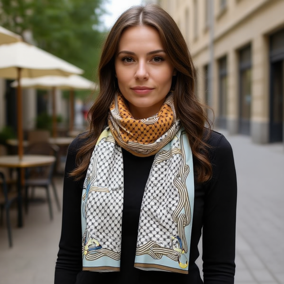 Letter C Patchwork Small Square Scarf 70x70cm 38g Fashion Accessory For Women