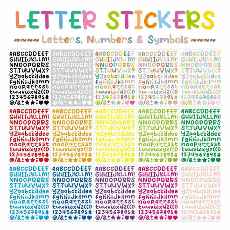 0.5inch Letter Stickers in 15 Colors