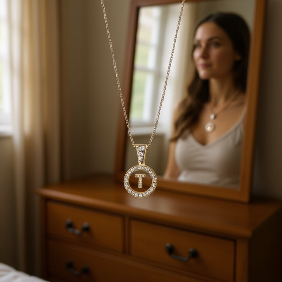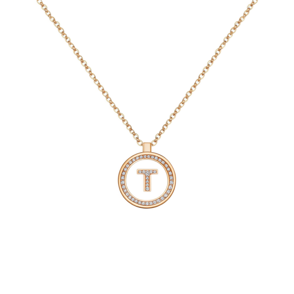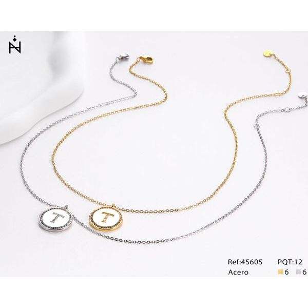 Letter T Rhinestone Pendant Necklace 2Cm Collar Chain Silver Gold Tone Acero Ref45605