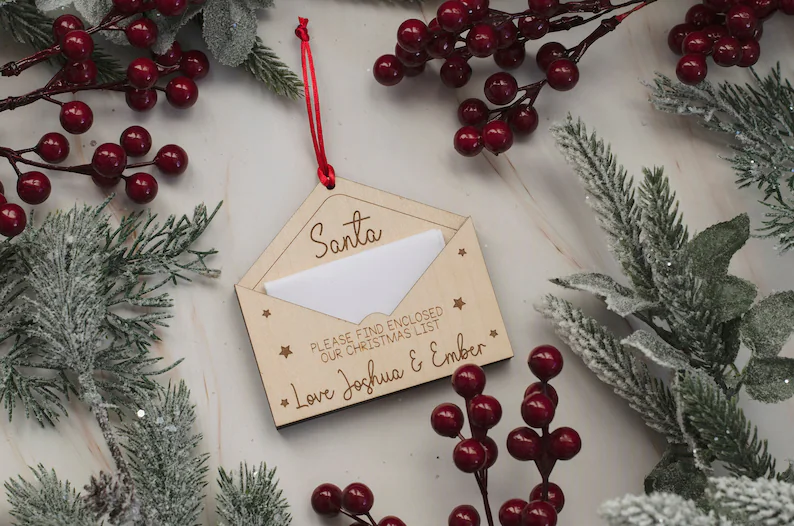 Letter to Santa Envelope Ornament Wooden Envelope to Put Christmas List in Laser Engraved Christmas Ornament