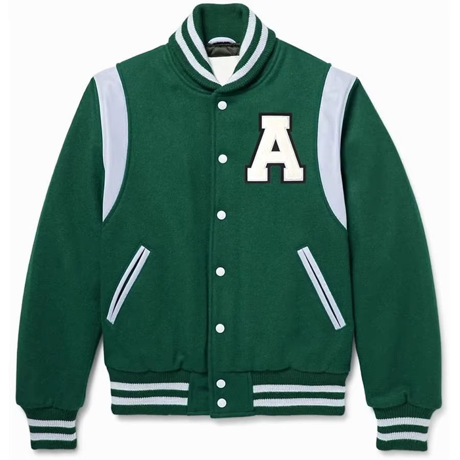 Blouson universitaire de baseball d'hiver style Letterman, service OEM, col montant, fermeture à bouton unique, broderie motif léopard, chauffant à l'avant