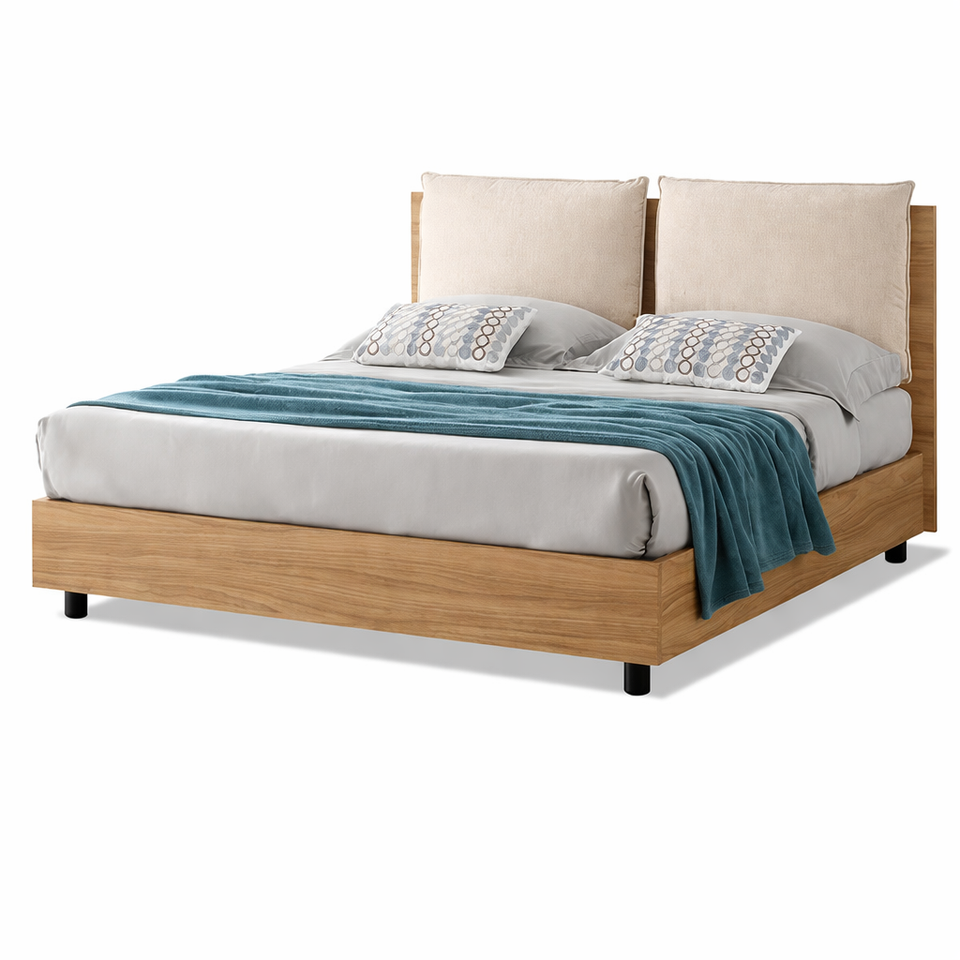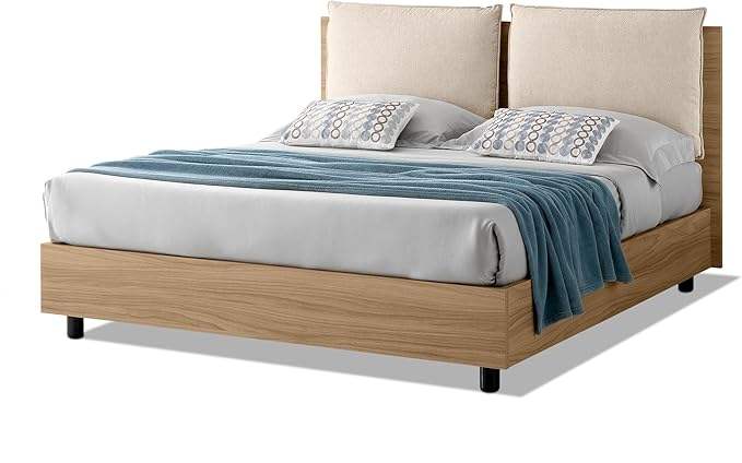Lit avec rangement, simple, double, queen size, MADE IN ITALY, tête de lit rembourrée avec coussin et sommier à lattes EVERGREENWEB