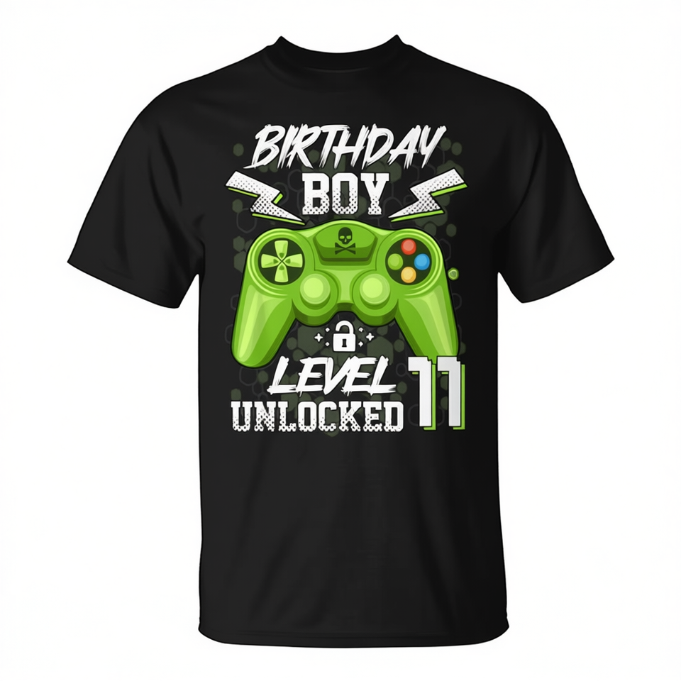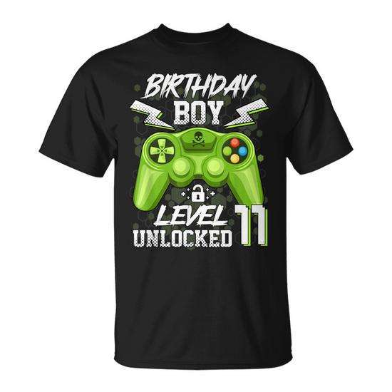 T-shirt pour garçons, jeu vidéo débloqué de niveau 11, 11e anniversaire, gamer
