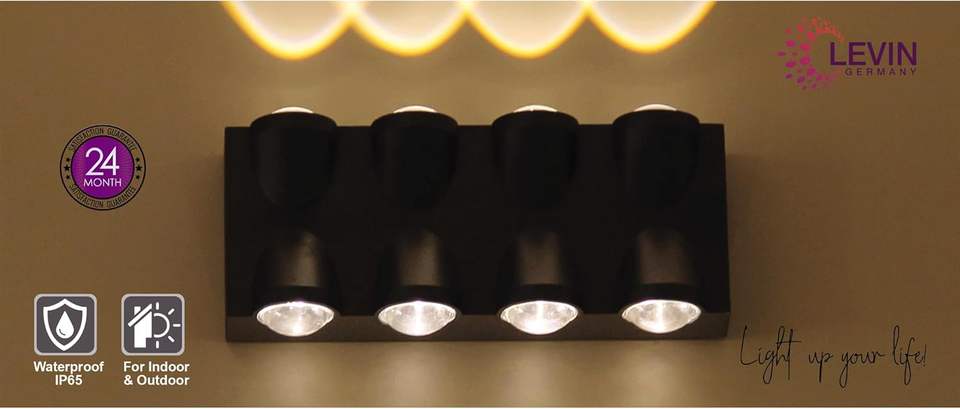 Levin Germany 8W Applique murale LED IP65 étanche pour extérieur en fer noir 3500K blanc chaud Ra80 190x90x50mm Pack 1