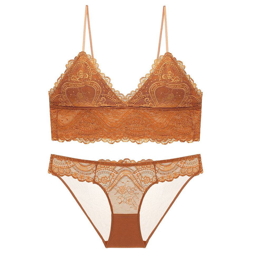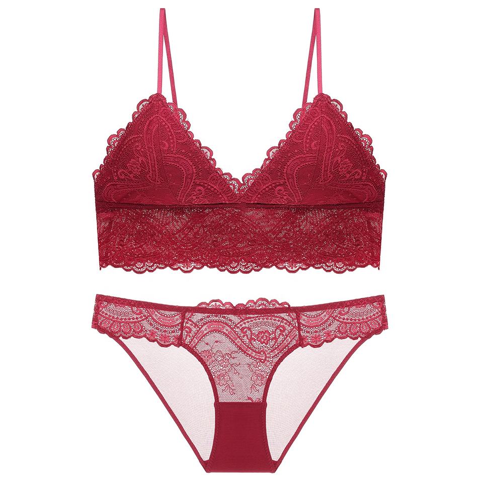 Conception:Coupe mince Coton Rembourré Français Triangle En Dentelle Soutien-Gorge Ensemble