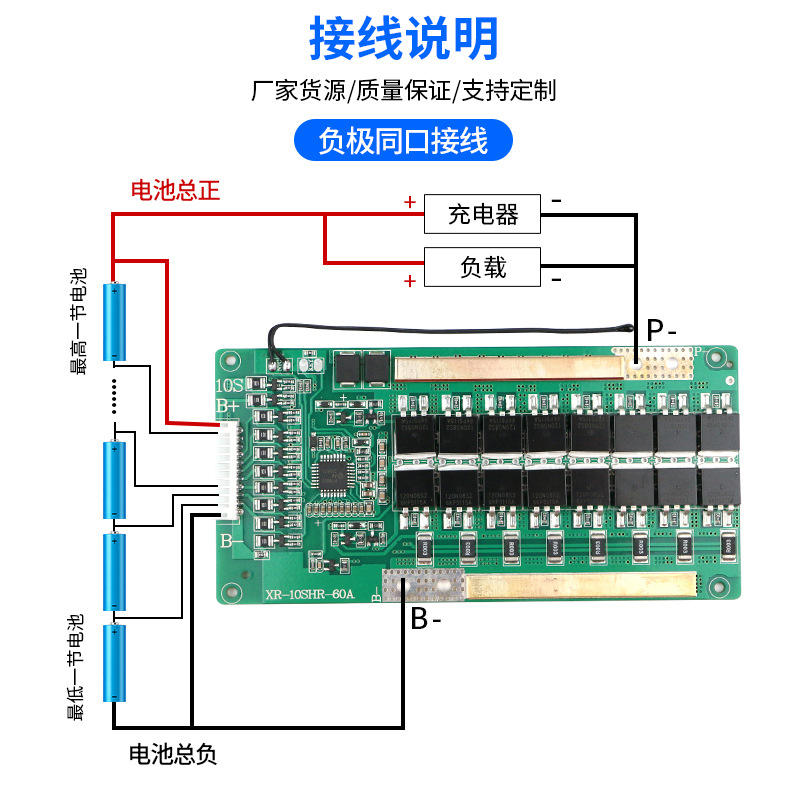 Li-ion 10S 36V 40A 50A 60A pour batterie lithium-ion ternaire NMC 3,7V avec équilibrage et carte de charge/décharge NTC sur le même port