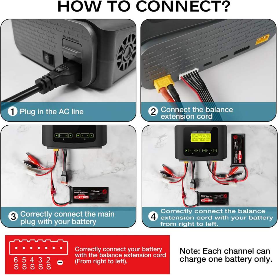 Chargeur de batterie LiPo à grand écran, double chargeur/déchargeur RC 10A rapide avec équilibrage 1-6S pour voitures et drones RC